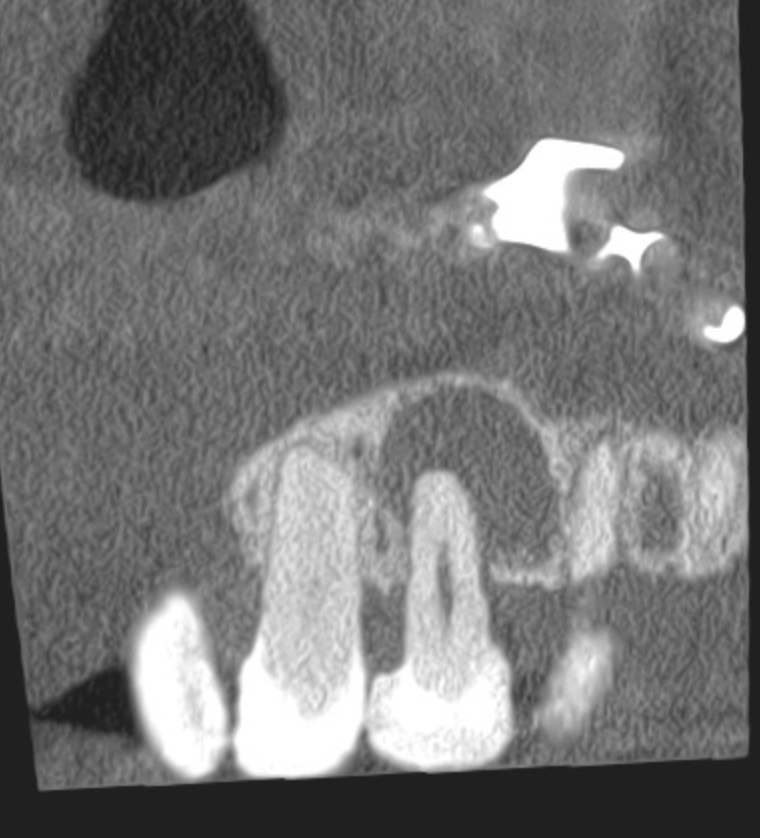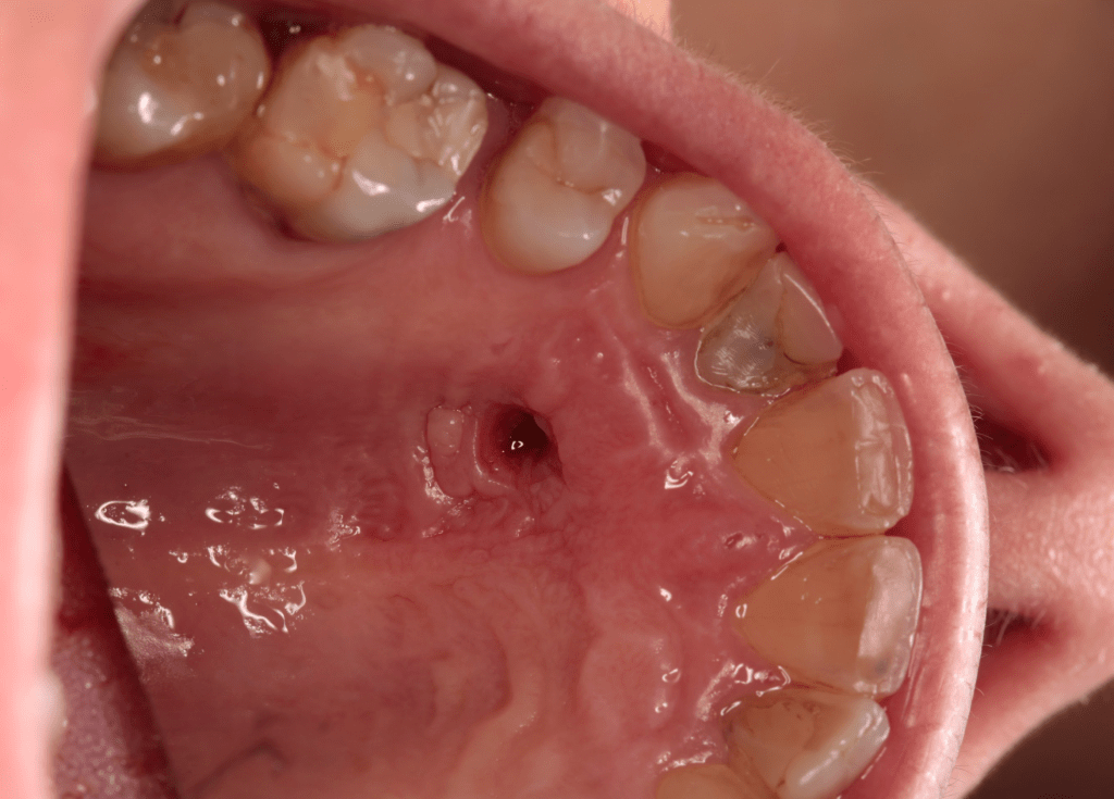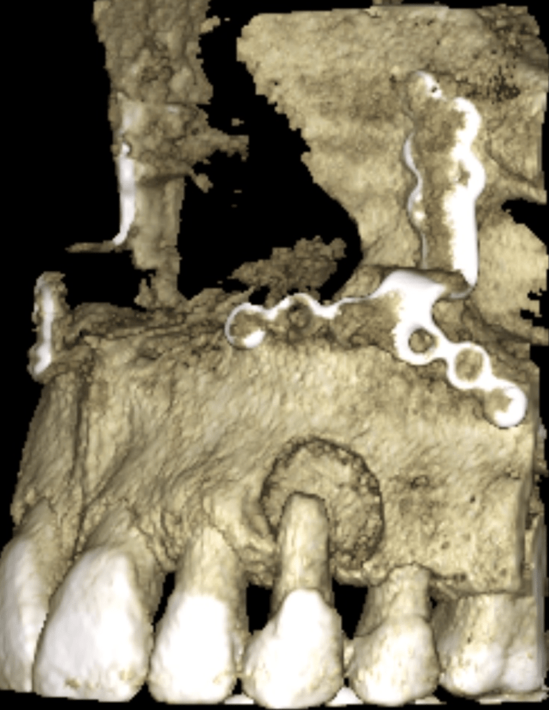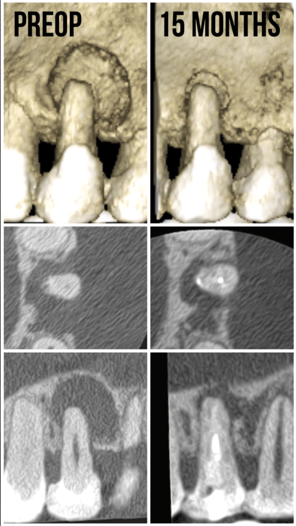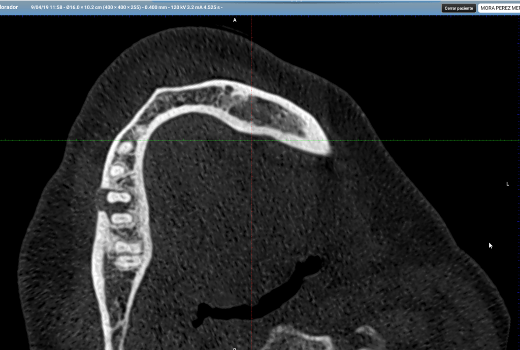 Reimplante, istmo apical, curación cortical palatina 1 año